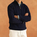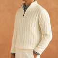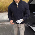 This elegant sweater features a stunning textured cable knit pattern and a chic zipper closure. Versatile and warm, it’s perfect for layering or wearing alone, making it a timeless addition to your wardrobe.